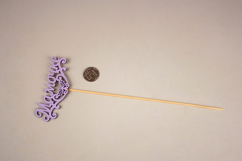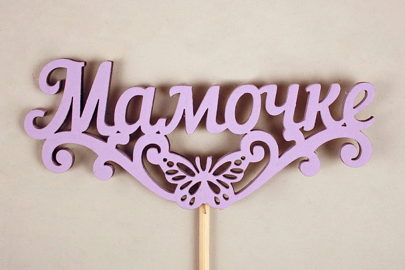 Топпер "Мамочке" с бабочкой (10,5*29) МДФ 3мм, окрашен. на шпажке, Сиреневый, Уп-10 шт.