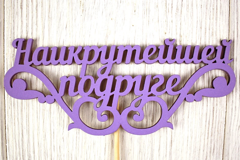 Топпер "Наикрутейшей подруге" (14,5*30) МДФ 3мм, окрашен. на шпажке, Сиреневый, 1 шт.