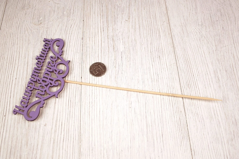 Топпер выполнен из качественного МДФ толщиной 3 мм, что гарантирует его прочность и долговечность. 🎨 Он окрашен в нежный сиреневый цвет, который привнесет в праздник атмосферу легкости и радости.