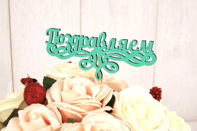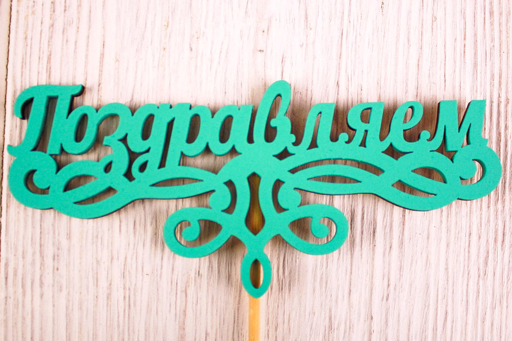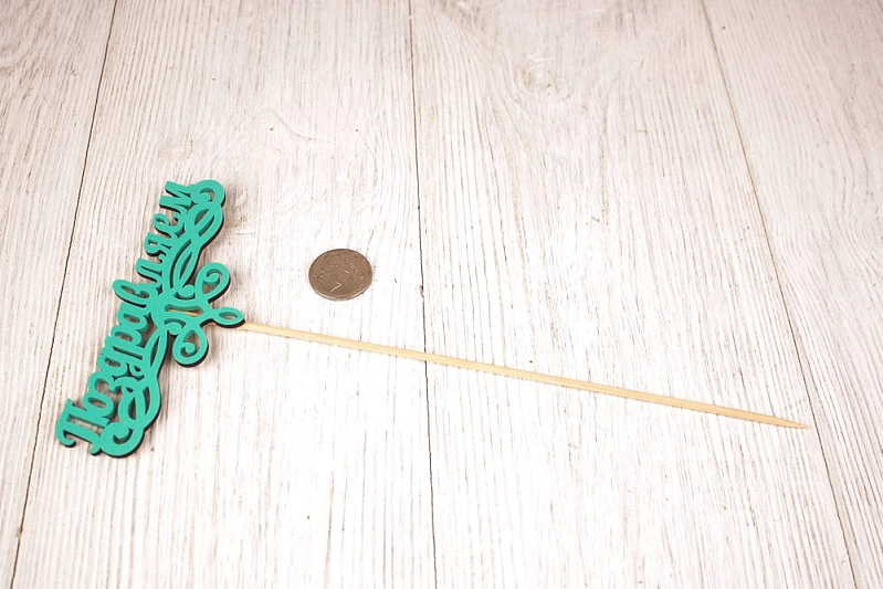 Топпер "Поздравляем!" (13*28) МДФ 3мм, окрашен. на шпажке, Тиффани, Уп-10 шт.