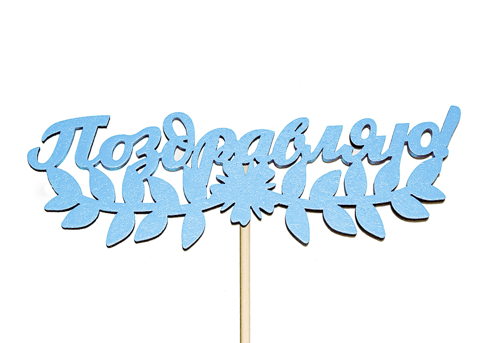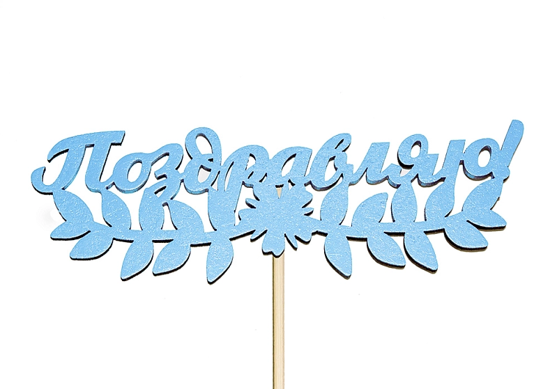 Топпер "Поздравляю!" (13*28) МДФ 3мм, окрашен. на шпажке, Голубой, Уп-10 шт.
