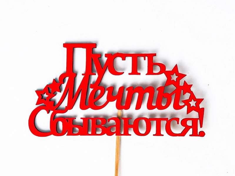 Топпер "Пусть мечты сбываются!" (12,5*28) МДФ, окрашен. на шпажке, Красный, 1 шт.