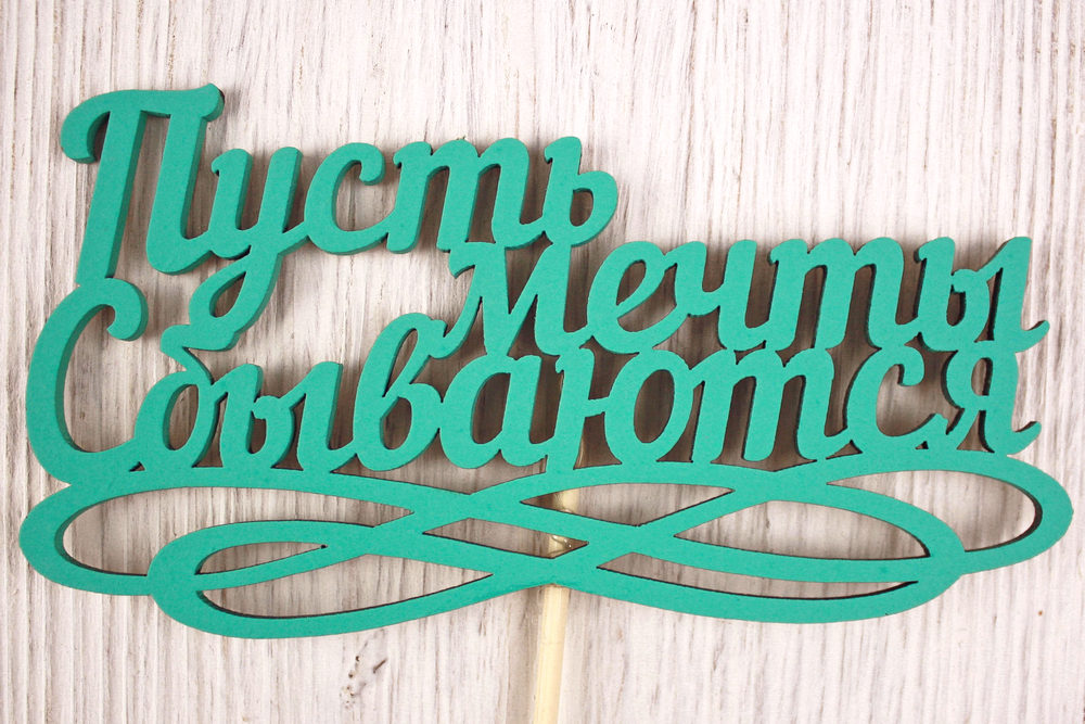 Топпер "Пусть мечты сбываются" (12,5*30) МДФ 3мм, окрашен. на шпажке, Тиффани, Уп-10 шт.