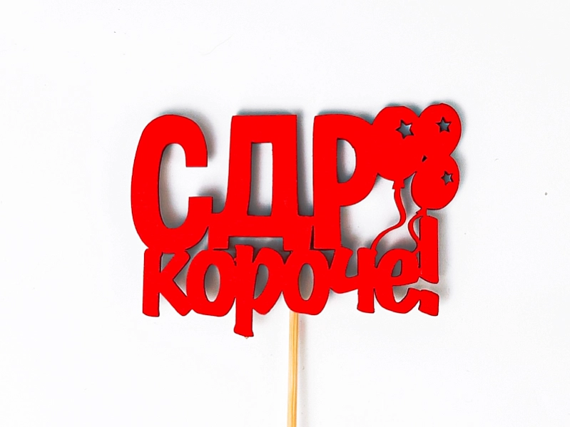 Топпер "С ДР короче!" (9*27) МДФ, окрашен. на шпажке, Красный, 1 шт.