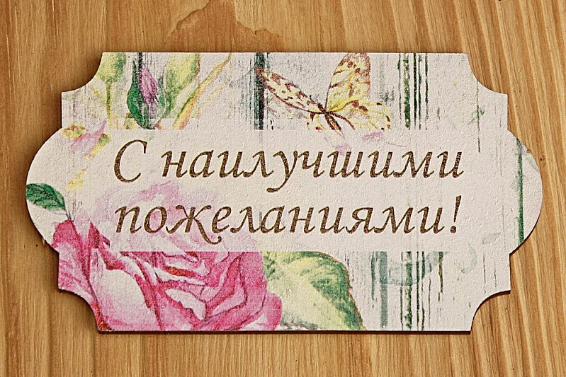 Топпер "С наилучшими пожеланиями!" (8,3*5) МДФ 3мм, УФ печать, Уп-10 шт.