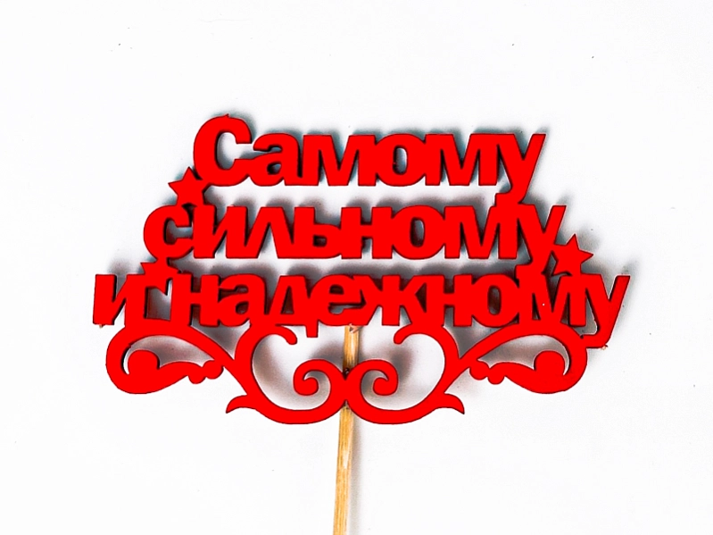 Топпер "Самому сильному и надёжному" (10*26) МДФ, окрашен. на шпажке, Красный, 1 шт.