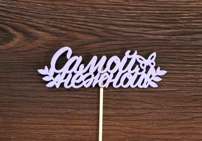 Топпер "Самой нежной" (13*27) МДФ 3мм, окрашен. на шпажке, Сиреневый, 1 шт.