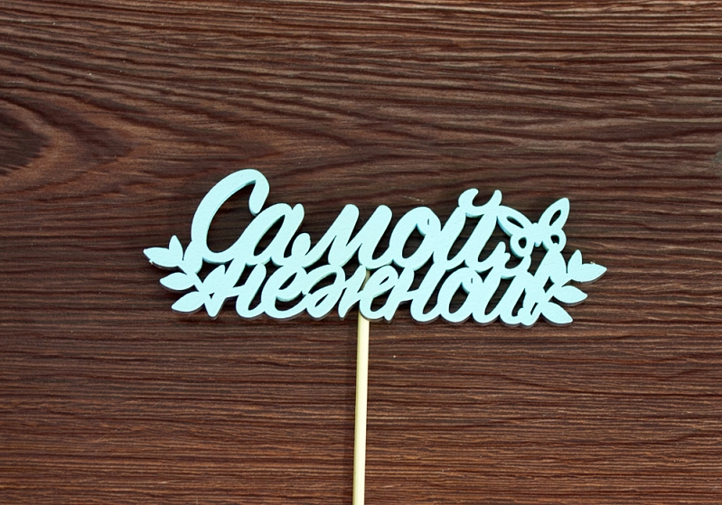 Топпер "Самой нежной" (13*27) МДФ 3мм, окрашен. на шпажке, Тиффани, Уп-10 шт.