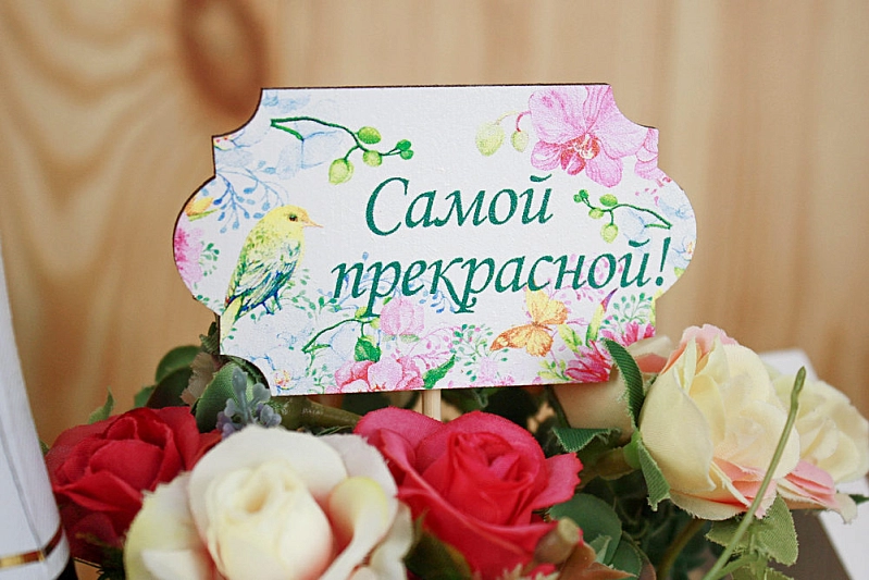 Топпер "Самой прекрасной" классика №1 (8,5*28) МДФ 3мм, УФ печать, на шпажке, Уп-10 шт.