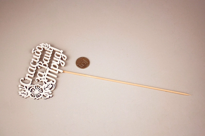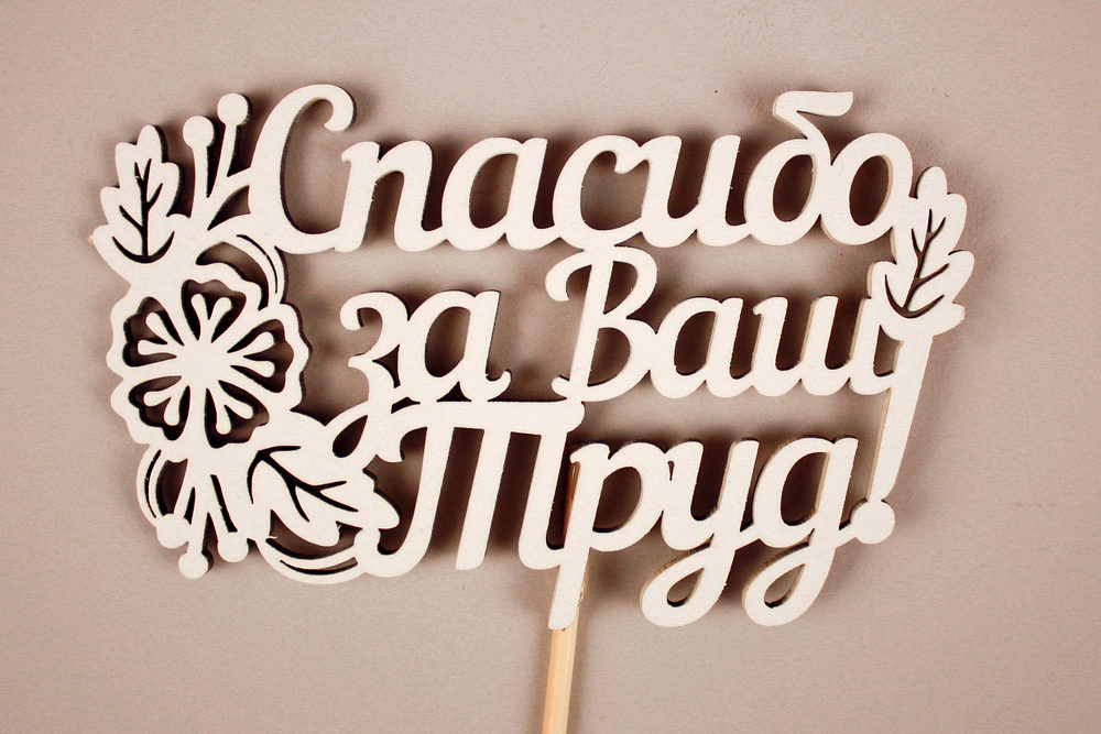 Топпер "Спасибо за Ваш Труд!" (11*29) МДФ 3мм, окрашен. на шпажке, Белый, 1шт.