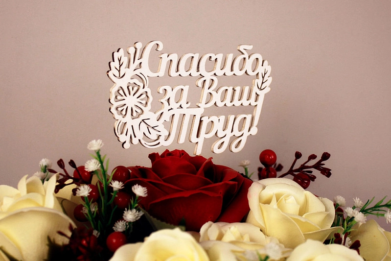 Топпер легко крепится к торту с помощью шпажки. 🍰 Он идеально подойдет для поздравления коллег, учителей, врачей или любого человека, который заслуживает благодарности. ✨