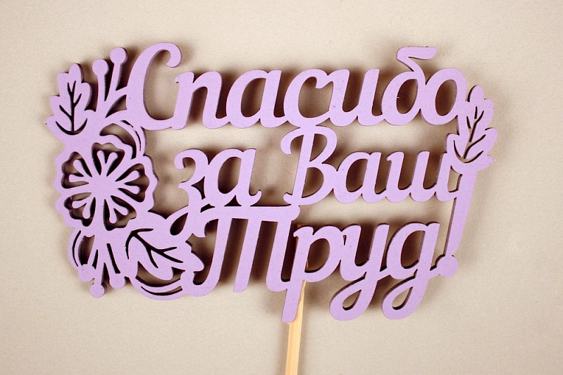 Топпер "Спасибо за Ваш Труд!" (11*29) МДФ 3мм, окрашен. на шпажке, Сиреневый, Уп-10 шт.