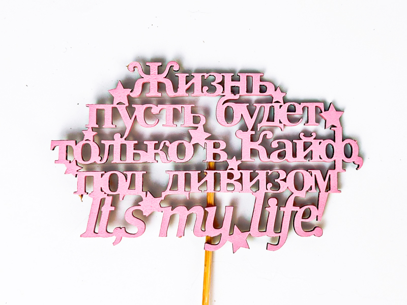 Тп464-04-0505 Топпер "Жизнь в кайф" (12,5*27) МДФ, окрашен. на шпажке, Розовый, 1 шт.