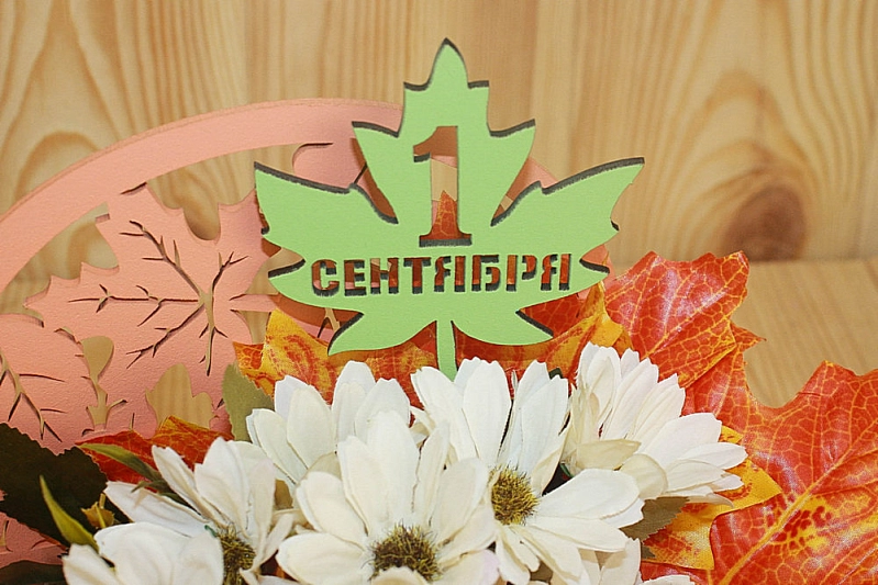 Тп241-04-1313 Топпер "1 сентября" в кленовом листе (8,6*30) МДФ 3мм, окрашен., Салатовый, 1 шт.