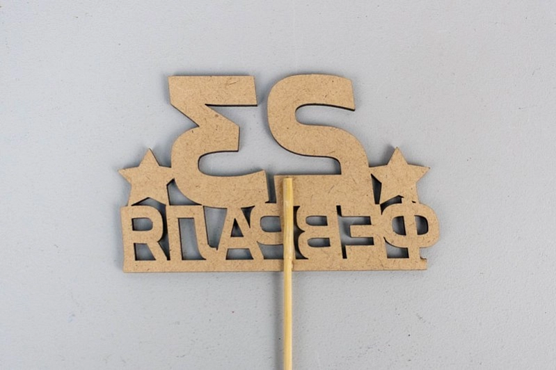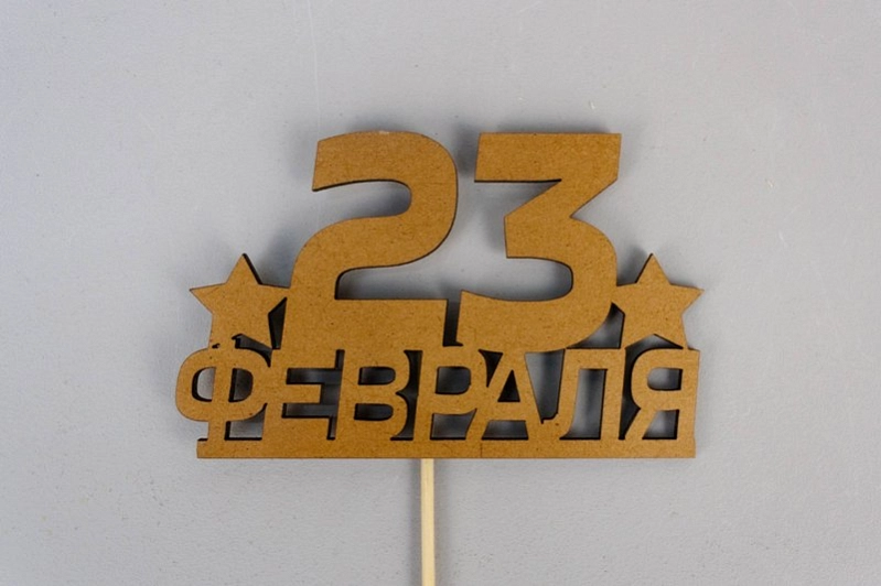 Топпер "23 февраля" (10*28) МДФ, окрашен. морилкой, на шпажке, Дуб, 1 шт.