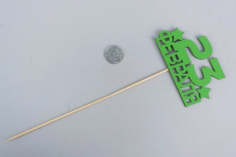 Топпер "23 февраля" (10*28) МДФ, окрашен. на шпажке, Зелёный, 1 шт.
