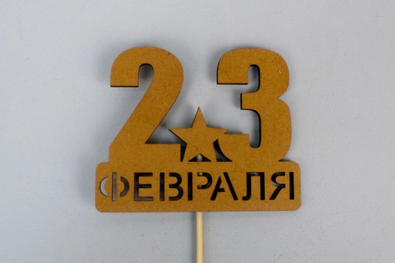 Топпер "23 февраля" со звездой (9*29) МДФ, окрашен. морилкой, на шпажке, Дуб, 1 шт.