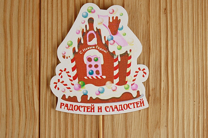 Топпер "Пряничный домик" (7,5*30) МДФ 3мм, УФ печать, на шпажке, Уп-10 шт.