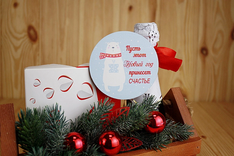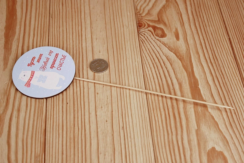 Тп303-02-0000 Топпер с белым медведем, круг (8,5*30) МДФ 3мм, УФ печать, на шпажке, 1 шт.