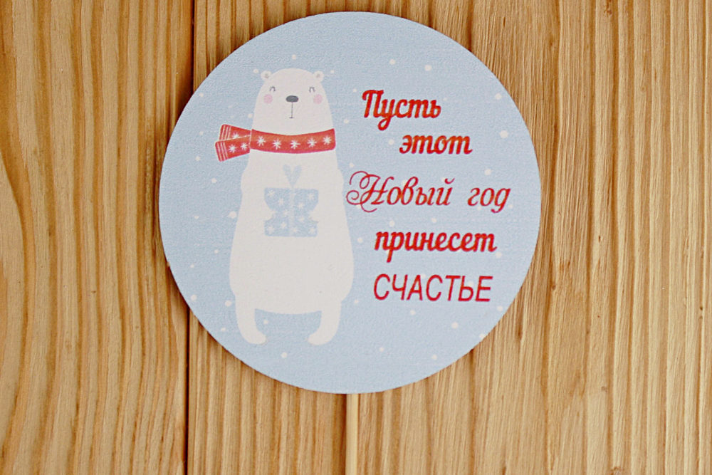 Топпер с белым медведем, круг (8,5*30) МДФ 3мм, УФ печать, на шпажке, 1 шт.