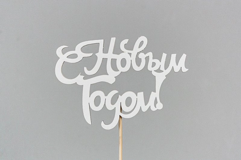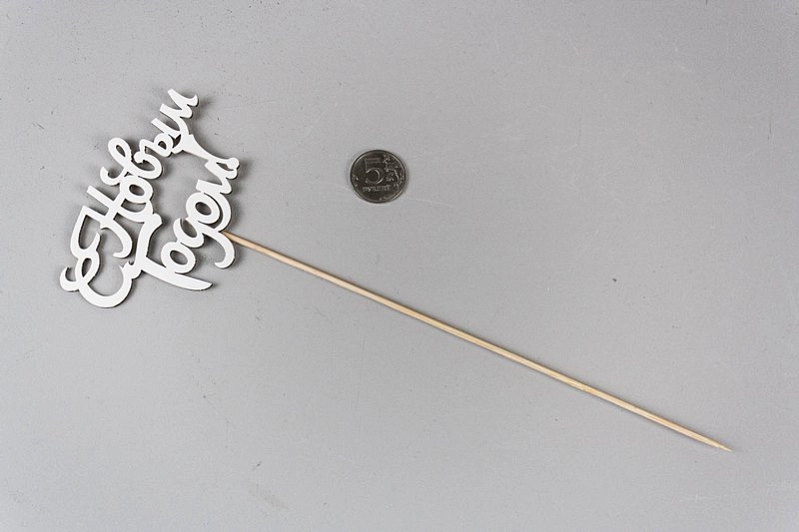 Топпер "С Новым годом!" (10*30) МДФ, окрашен. на шпажке, Белый, 1 шт.