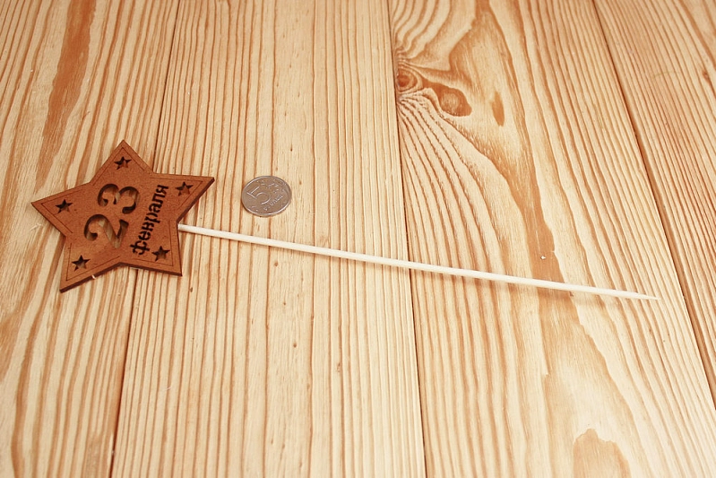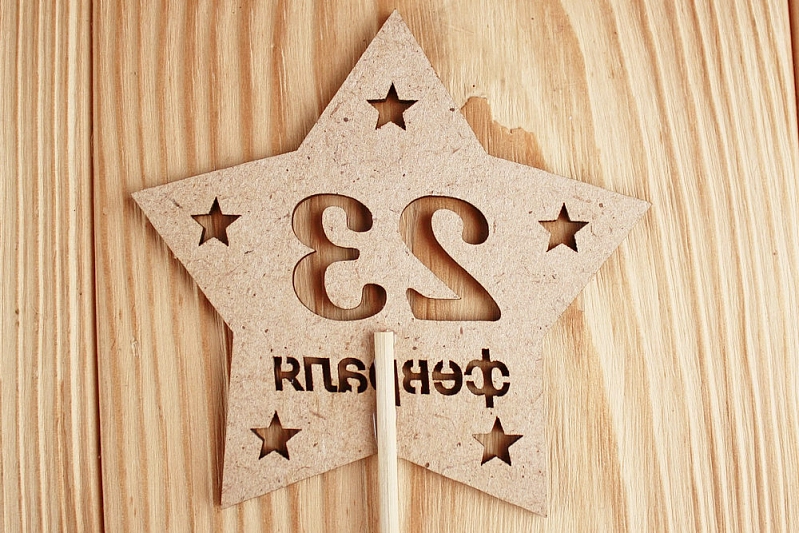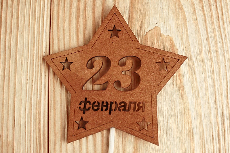 Топпер-звезда "23 февраля" (9,5*30) МДФ 3мм, окрашен. морилкой, на шпажке, Дуб, 1 шт.