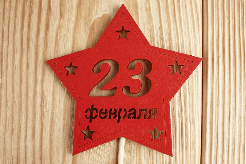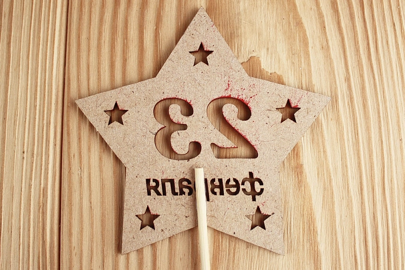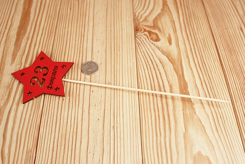 Топпер-звезда "23 февраля" (9,5*30) МДФ 3мм, окрашен. на шпажке, Красный, Уп-10 шт.