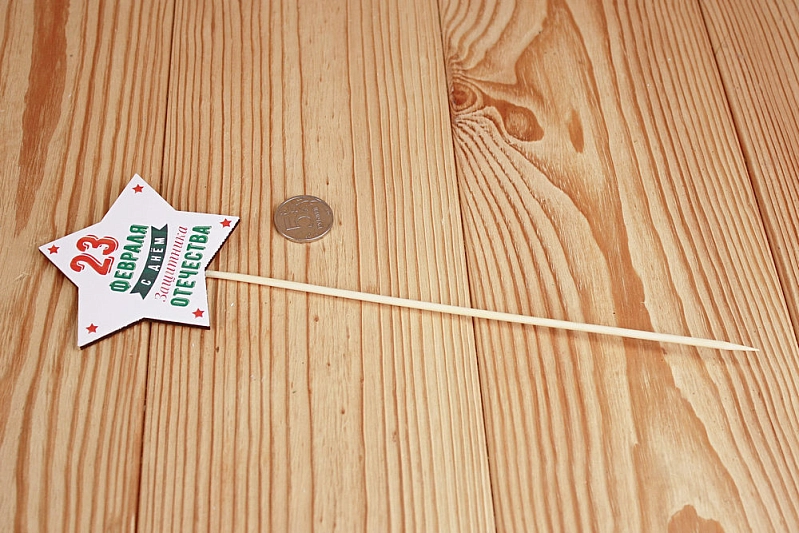 Тп310-02-0000Н Топпер-звезда "23 февраля" (9,5*30) МДФ 3мм, УФ печать, на шпажке, Уп-10 шт.