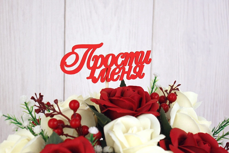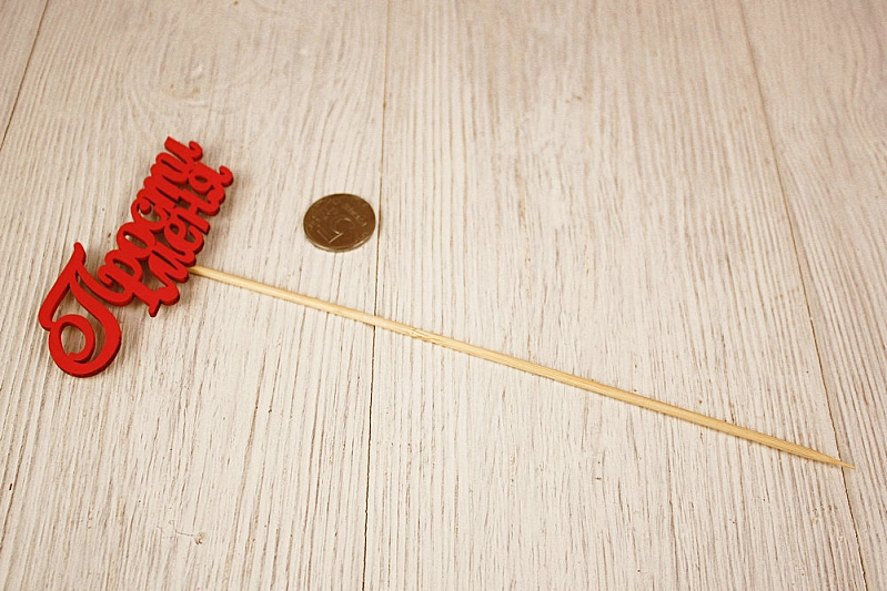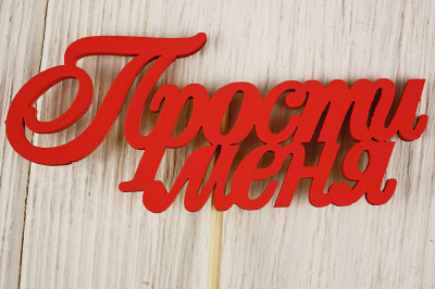 Топпер "Прости меня" (10*27) МДФ 3мм, окрашен. на шпажке, Красный, 1 шт.