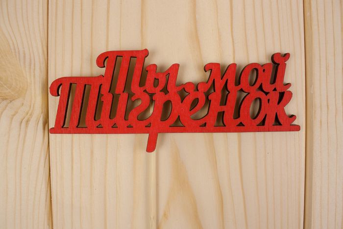 Топпер "Ты мой тигрёнок", окраш., на палочке (шир.12см;выс.4,8см) МДФ 3мм, окраш., красный