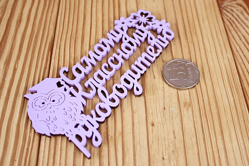 Шильдик "Самому классному руководителю" (12*6) МДФ 3мм, окрашен., Сиреневый, Уп-10 шт.