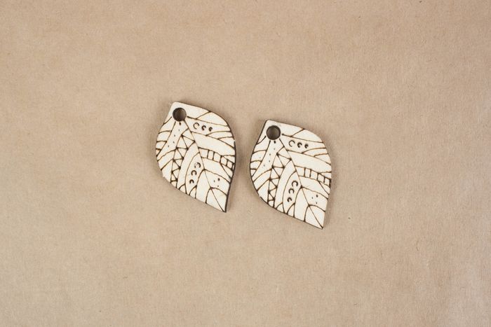 Заготовка для творчества. Серьги "Лист" в этническом стиле (3,3*2,2*0,3) Фанера 3мм, неокраш.,1 пара