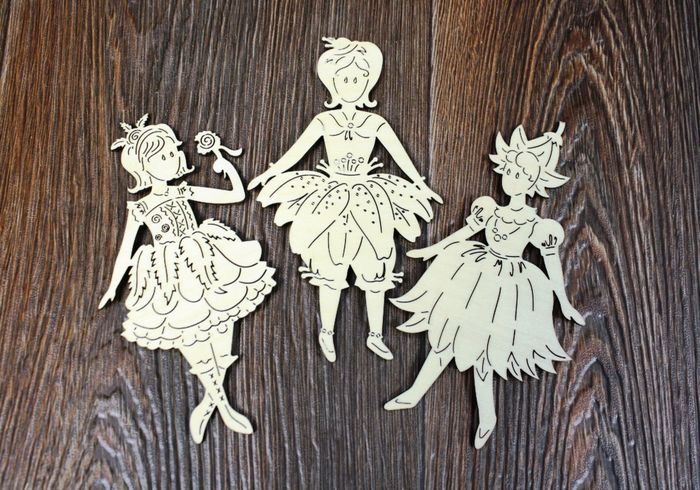 Заготовка для творчества. "Куклы-цветы" (8,5*15) Фанера 3мм, неокраш.,Набор 3 шт