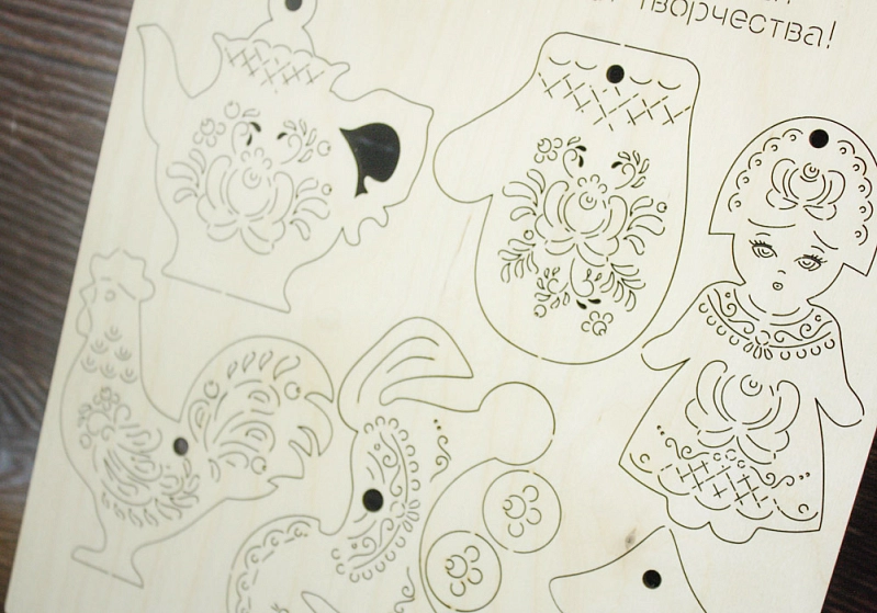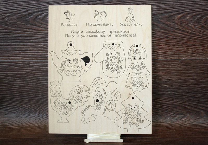 ЗгТв211-00-0000 Заготовка для творчества. Набор ёлочных украшений для росписи "Гжель".Фанера 3мм, неокраш.,Набор 6 шт.